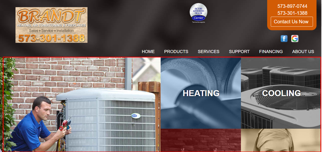 Let’s take BrandtHavac, for example. Their site design seems to be okay, but they’re using stock images instead of their own.