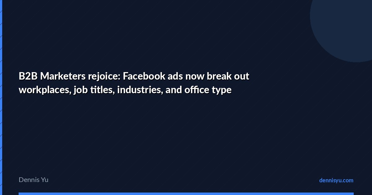 For the rest of us, continue to use workplace and job title targets to make sure you’re influencing the influencers, such as the press and industry folks.