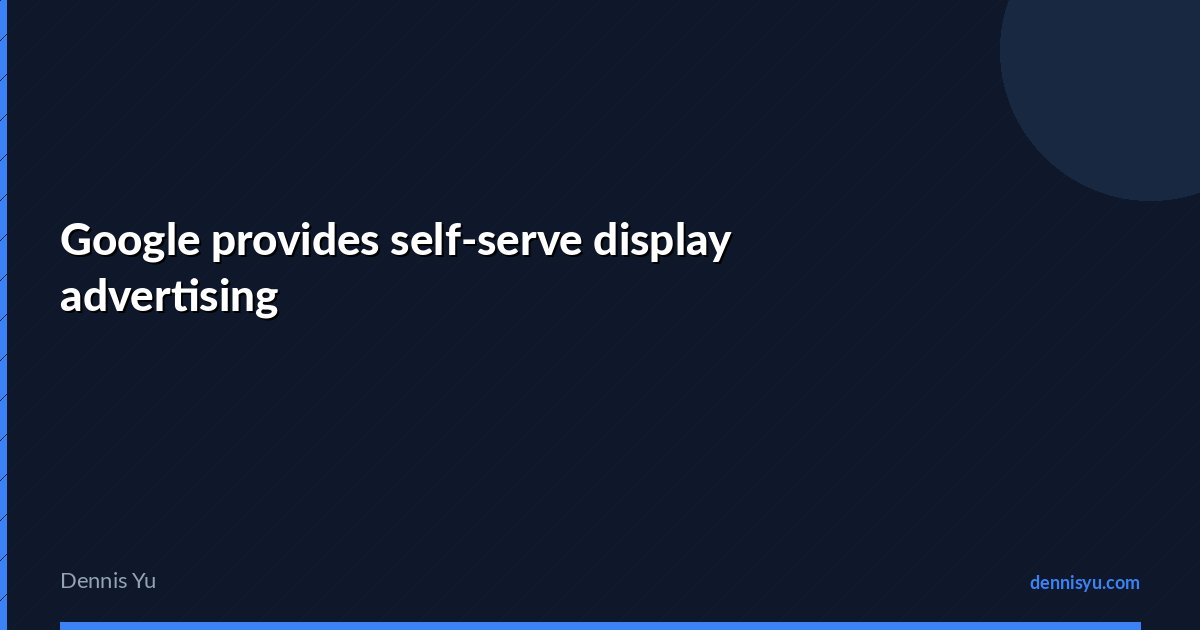 Google placed in beta yesterday a new service to create free display ads. This is a cleaner implementation, in my opinion to what Yahoo and AdReady have with MyAds. Slowly, Google is moving from text-based to true self-serve advertising. This is going to put a lot of low-value designers out of business. This service allows you to fill out a form with text and then be able to customize colors and effects, plus upload an image. It automatically creates banners in a variey of sizes, saving you time and effort.