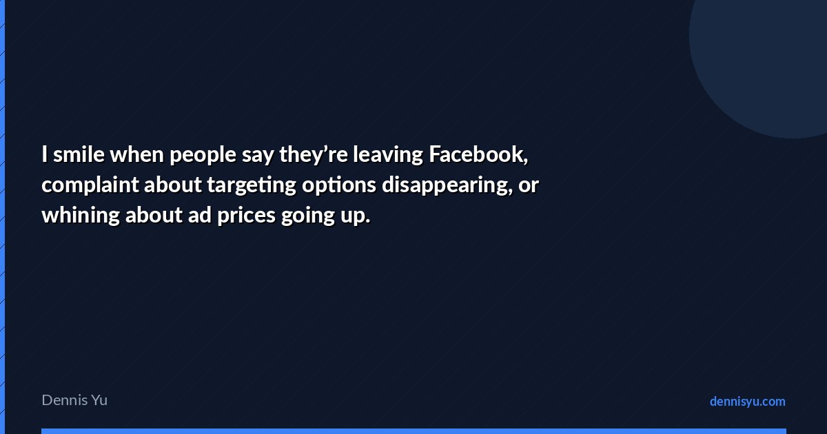 I believe and continue to see validated that marketers just don’t know how to market on Facebook. Then they turn around and complain about Facebook not working or that traffic costs are too high.