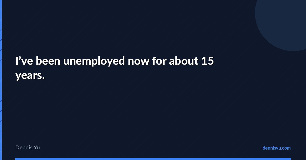 I've been unemployed now for about 15 years.