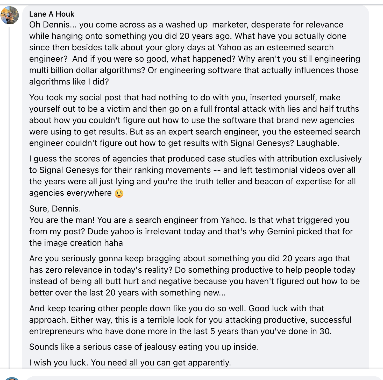 When a self-appointed guru trashes you online, there are usually two reasons: either you’ve done something wrong, or he’s trying to cover his own failings. In Lane Houk’s case, it’s clearly the latter.
