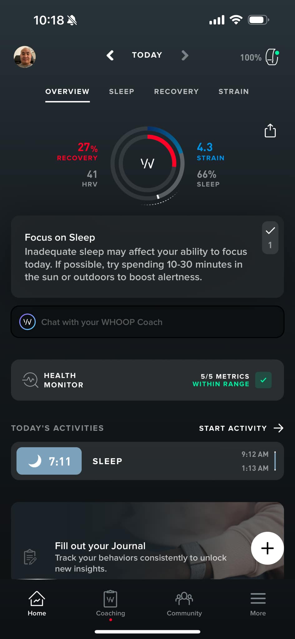 I woke up exhausted this morning, as you can see from my low recovery and 41 HRV.